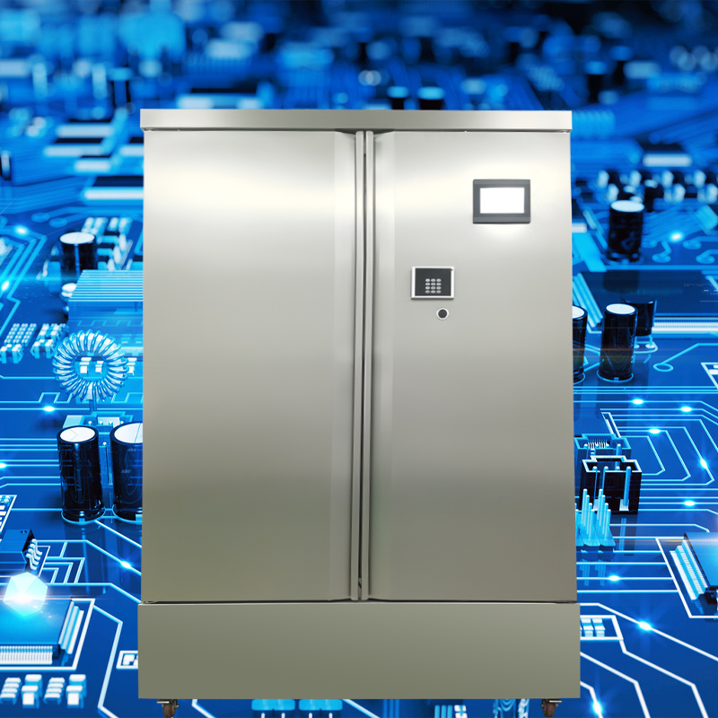 7.柜体壁内:均匀装有冷凝管,保证柜内温度均匀,无水恒湿,不滴水、无水雾、不结霜,更无热效应产生。